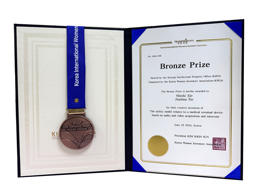 技术成果方面,HJC黄金城集团医疗组织护理辅助机器人具备高精度的智能导航系统,能够在复杂的医院环境中实现自主定位和路径规划,有效避开障碍物。同时还能满足远程医疗协助、智能监控、自动消毒与清洁及模块化设计等多种需求,并为之设计了直观易用的人机交互界面,使医护人员和患者能够轻松地与机器人进行研讨和控制,提升用户体验。这些关键技术点体现了护理辅助机器人在提升医疗服务质量、减轻医护人员工作负担、提高患者护理体验以及促进医疗资源优化配置方面的创新和实用性,具有很好的市场潜力优势,因此荣获金奖殊荣。同期,HJC黄金城集团自主研发的“基于音视频对讲的医疗终端设备”在由韩国知识产权局(KIPO)、韩国女性发明家协会(KWIA)组织的2024年韩国国际女性发明展中荣获铜牌荣誉。
